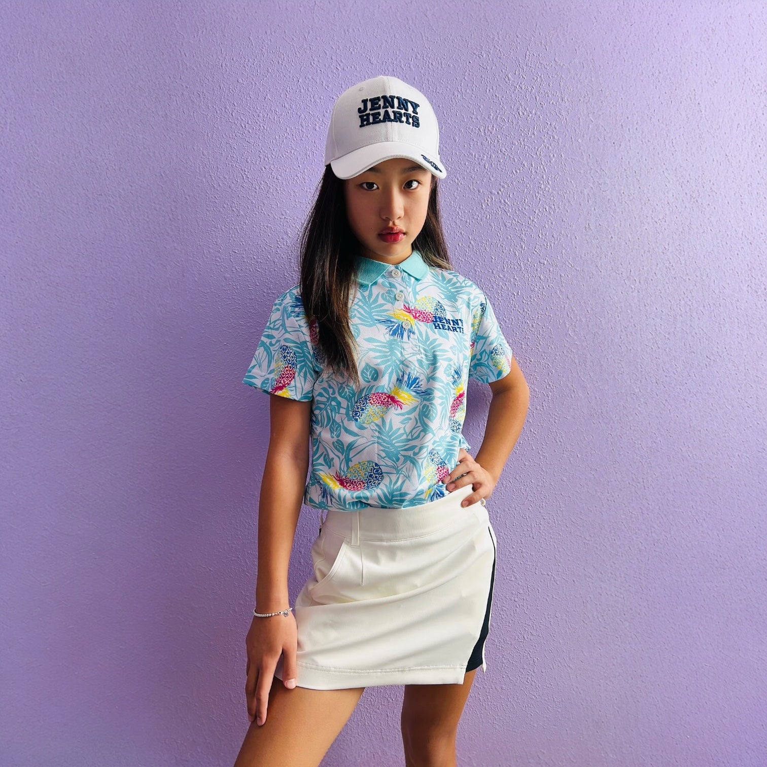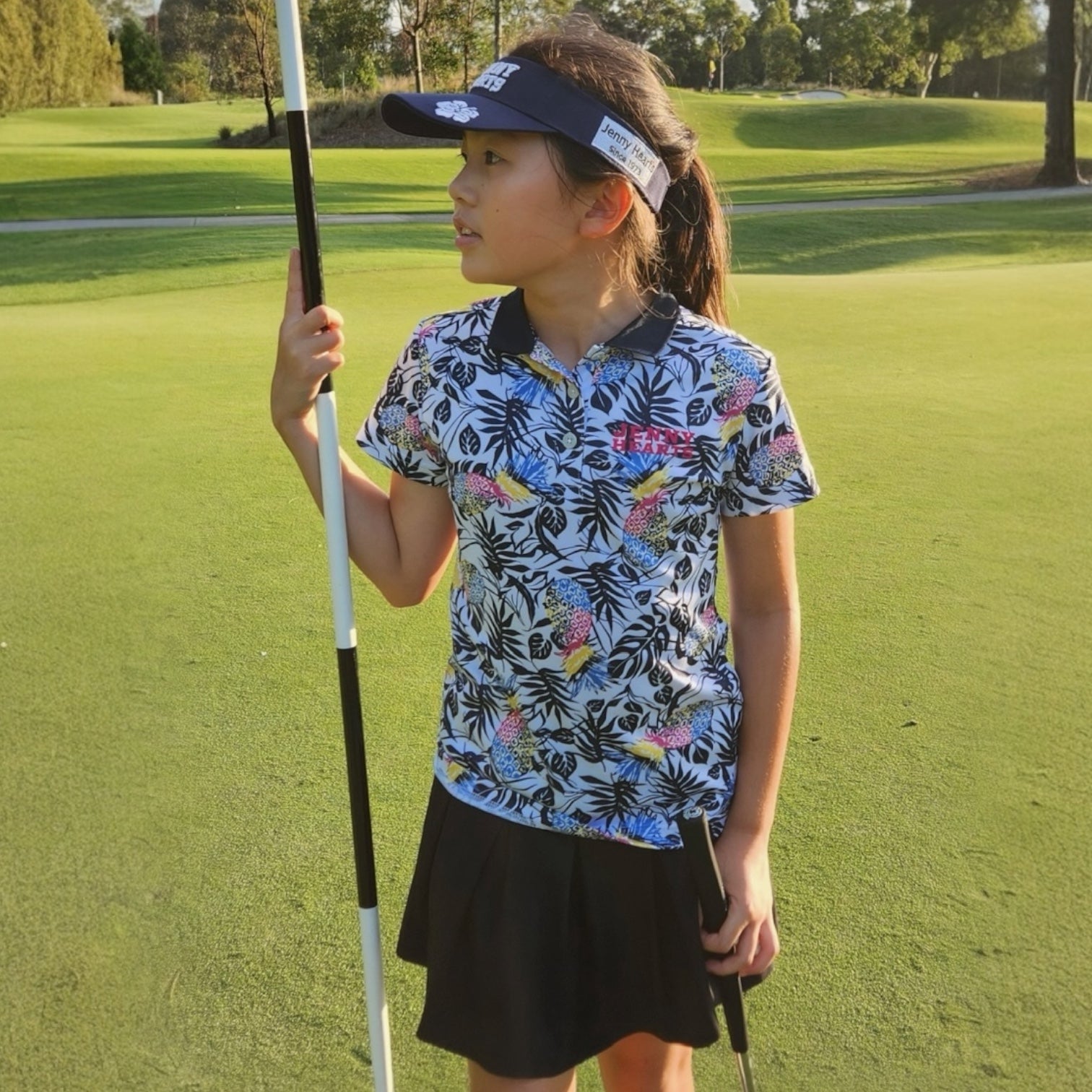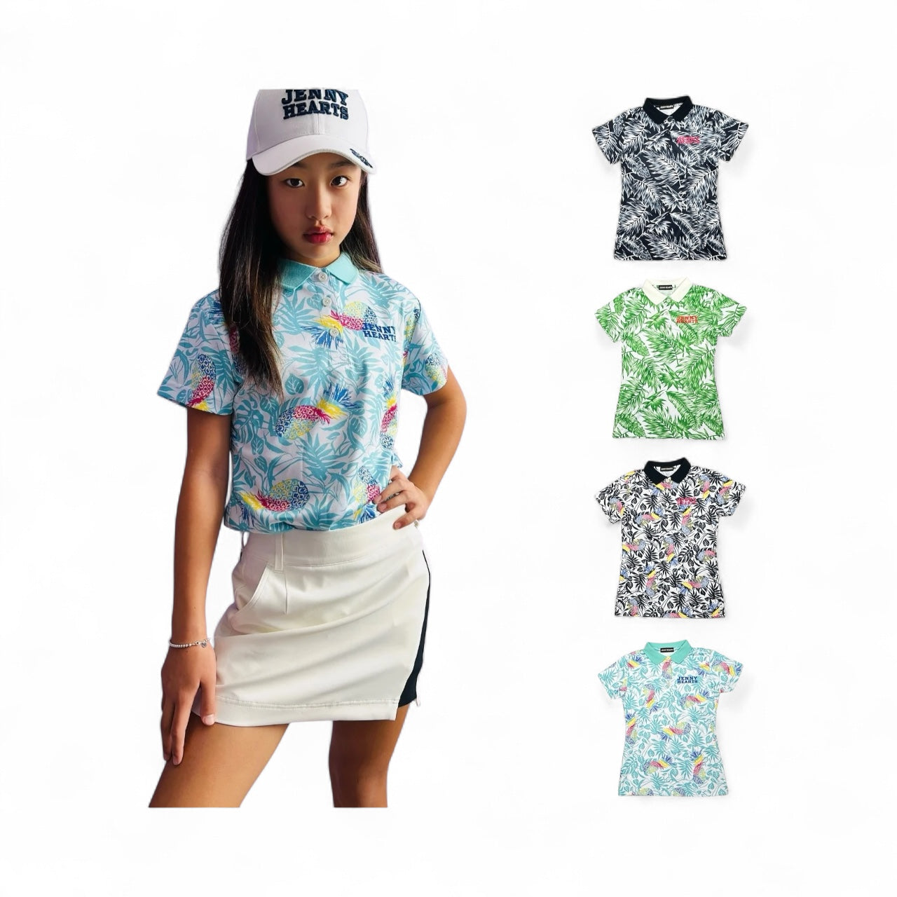 夏にぴったりのジュニアゴルフウェア!JennyHeartのポロシャツは着心地がよく、スイングを妨げません。ドライタッチ素材と柔らかい質感が魅力的。滑らかな肌触りで快適なゴルフ体験が待っています。サイズは130cmと150cmでご用意しています。